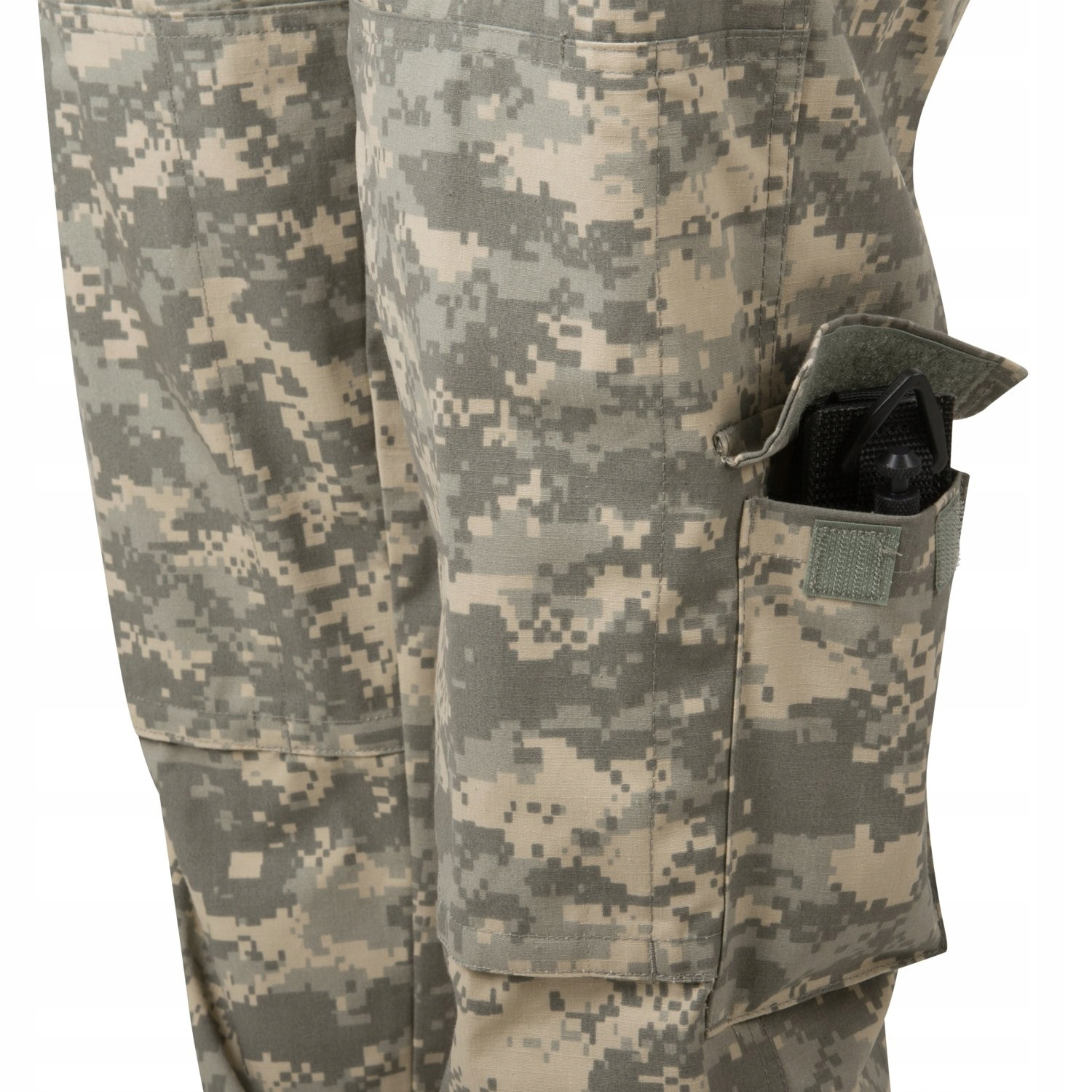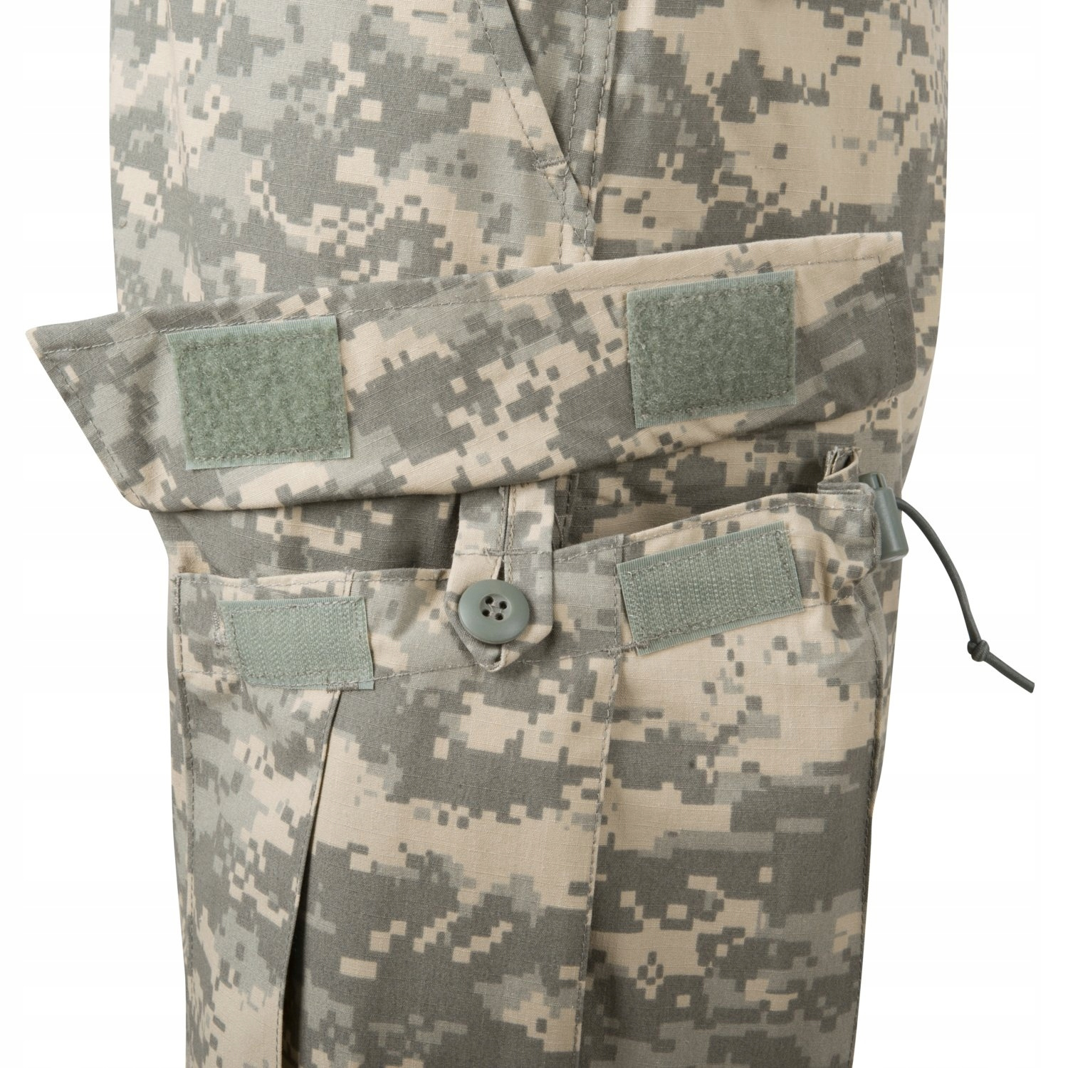 - Spodnie Helikon-Tex ACU z materiału PolyCotton Ripstop w kamuflażu UCP. Klasyczny mundurowy krój, liczne kieszenie, wzmocnienia na kolanach i w strefie siedzenia oraz regulacja w pasie i przy nogawkach. Idealne do taktyki, airsoftu i outdooru.